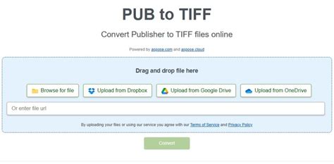 Pub To Tiff . Click anywhere in the blue area or on the browse for file button to upload or drag and drop them. Klik di mana saja di area biru atau di tombol browse for file untuk mengunggah.